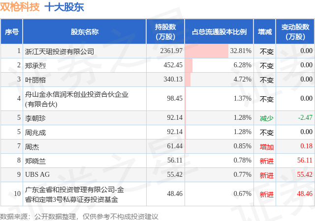 根据双枪科技2025年三季报公布的十大股东详情如下:
