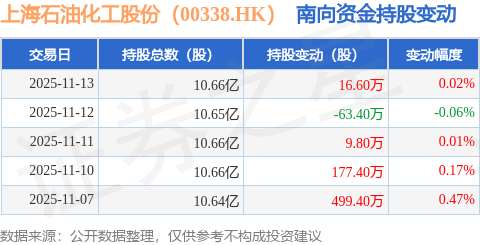 证券之星消息,11月13日南向资金增持16.6万股上海石油化工股份(00338.HK)。近5个交易日中,获南向资金增持的有4天,累计净增持639.8万股。近20个交易日中,获南向资金增持的有12天,累计净增持1326.2万股。截至目前,南向资金持有上海石油化工股份(00338.HK)10.66亿股,占公司已发行普通股的33.14%。