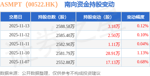 证券之星消息,11月13日南向资金增持3.18万股ASMPT(00522.HK)。近5个交易日中,获南向资金增持的有5天,累计净增持52.83万股。近20个交易日中,获南向资金减持的有6天,累计净减持8.88万股。截至目前,南向资金持有ASMPT(00522.HK)2588.58万股,占公司已发行普通股的6.2%。