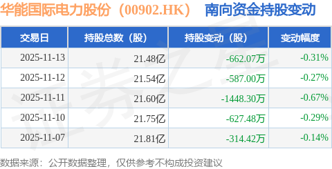 证券之星消息,11月13日南向资金减持662.07万股华能国际电力股份(00902.HK)。近5个交易日中,获南向资金减持的有5天,累计净减持3639.27万股。近20个交易日中,获南向资金减持的有15天,累计净减持1.16亿股。截至目前,南向资金持有华能国际电力股份(00902.HK)21.48亿股,占公司已发行普通股的45.68%。