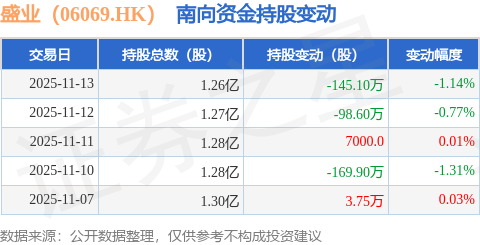 证券之星消息,11月13日南向资金减持145.1万股盛业(06069.HK)。近5个交易日中,获南向资金减持的有3天,累计净减持409.15万股。近20个交易日中,获南向资金减持的有10天,累计净减持153.85万股。截至目前,南向资金持有盛业(06069.HK)1.26亿股,占公司已发行普通股的11.81%。
