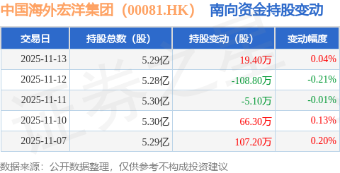证券之星消息,11月13日南向资金增持19.4万股中国海外宏洋集团(00081.HK)。近5个交易日中,获南向资金增持的有3天,累计净增持79.0万股。近20个交易日中,获南向资金增持的有15天,累计净增持1530.89万股。截至目前,南向资金持有中国海外宏洋集团(00081.HK)5.29亿股,占公司已发行普通股的14.84%。