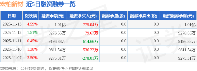 宏柏新材融资融券信息显示,融资方面,当日融资买入2592.01万元,融资偿还1816.97万元,融资净买入775.04万元。融券方面,融券卖出0.0股,融券偿还0.0股,融券余量0.0股,融券余额0.0万元。融资融券余额1.01亿元。