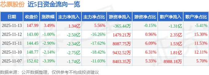 11月13日的资金流向数据方面,主力资金净流入1.34亿元,占总成交额5.56%,游资资金净流出365.44万元,占总成交额0.15%,散户资金净流出1.31亿元,占总成交额5.41%。