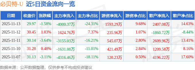 证券之星消息,截至2025年11月13日收盘,必贝特(688759)报收于29.97元,下跌1.58%,换手率11.81%,成交量5.49万手,成交额1.65亿元。