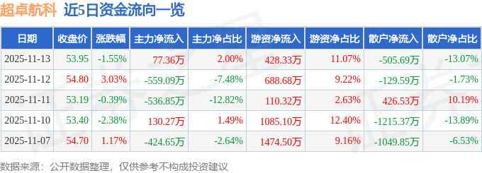 证券之星消息,截至2025年11月13日收盘,超卓航科(688237)报收于53.95元,下跌1.55%,换手率0.8%,成交量7180.0手,成交额3869.8万元。