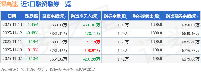 证券之星消息,截至2025年11月13日收盘,深高速(600548)报收于10.16元,下跌1.45%,换手率0.41%,成交量6.98万手,成交额7091.26万元。