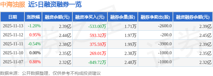 证券之星消息,截至2025年11月13日收盘,中海油服(601808)报收于14.77元,下跌1.2%,换手率0.49%,成交量14.54万手,成交额2.14亿元。