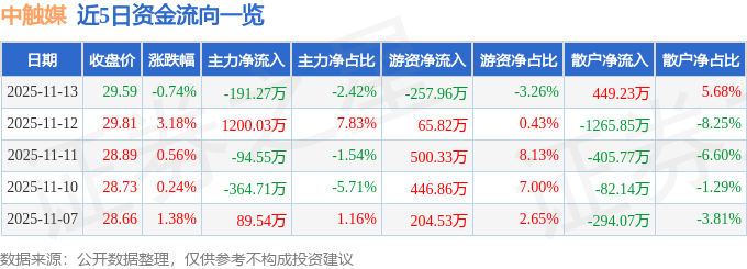 证券之星消息,截至2025年11月13日收盘,中触媒(688267)报收于29.59元,下跌0.74%,换手率1.51%,成交量2.65万手,成交额7905.83万元。