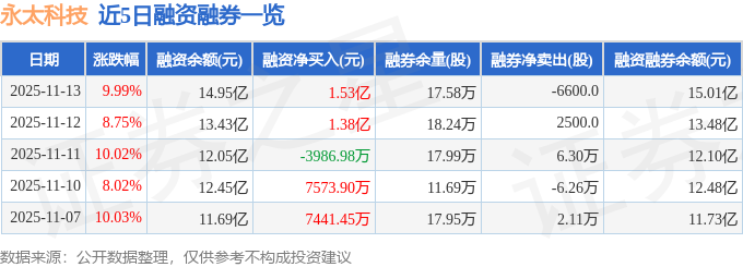 证券之星消息,截至2025年11月13日收盘,永太科技(002326)报收于29.95元,上涨9.99%,涨停,换手率28.6%,成交量231.16万手,成交额67.5亿元。