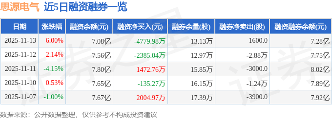 证券之星消息,截至2025年11月13日收盘,思源电气(002028)报收于152.55元,上涨6.0%,换手率2.55%,成交量15.57万手,成交额23.05亿元。
