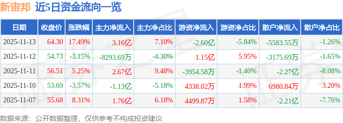 11月13日的资金流向数据方面,主力资金净流入3.16亿元,占总成交额7.1%,游资资金净流出2.6亿元,占总成交额5.84%,散户资金净流出5583.55万元,占总成交额1.26%。
