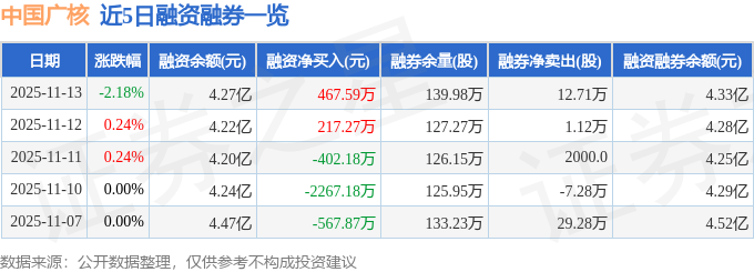 证券之星消息,截至2025年11月13日收盘,中国广核(003816)报收于4.04元,下跌2.18%,换手率0.34%,成交量135.36万手,成交额5.48亿元。