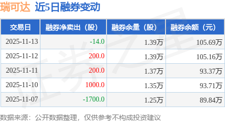 证券之星消息,11月13日,瑞可达(688800)融资买入1.39亿元,融资偿还1.15亿元,融资净买入2376.24万元,融资余额10.13亿元。