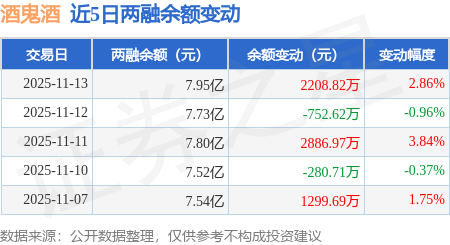 证券之星消息,11月13日,酒鬼酒(000799)融资买入1.31亿元,融资偿还1.09亿元,融资净买入2208.62万元,融资余额7.95亿元。