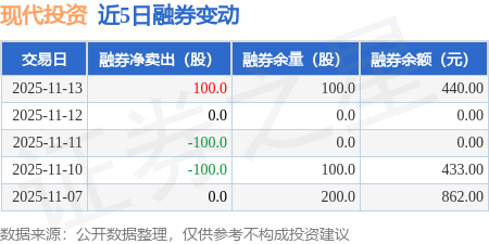 证券之星消息,11月13日,现代投资(000900)融资买入3131.58万元,融资偿还1339.84万元,融资净买入1791.74万元,融资余额2.69亿元。