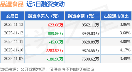 证券之星消息,11月13日,品渥食品(300892)融资买入2682.59万元,融资偿还2059.51万元,融资净买入623.08万元,融资余额9562.11万元。