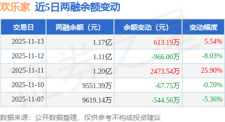 证券之星消息,11月13日,欢乐家(300997)融资买入1.21亿元,融资偿还1.15亿元,融资净买入613.19万元,融资余额1.17亿元。