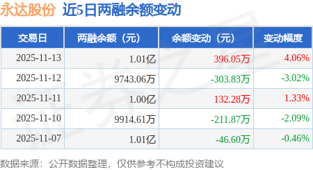 证券之星消息,11月13日,永达股份(001239)融资买入717.08万元,融资偿还321.03万元,融资净买入396.05万元,融资余额1.01亿元。