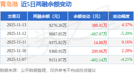 证券之星消息,11月13日,青岛港(601298)融资买入1690.32万元,融资偿还1300.1万元,融资净买入390.22万元,融资余额9273.46万元。