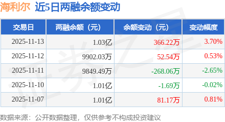 证券之星消息,11月13日,海利尔(603639)融资买入954.37万元,融资偿还588.16万元,融资净买入366.22万元,融资余额1.03亿元。