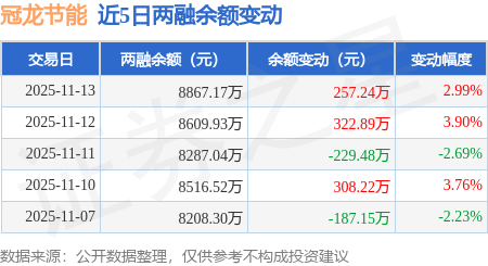 证券之星消息,11月13日,冠龙节能(301151)融资买入762.18万元,融资偿还504.94万元,融资净买入257.24万元,融资余额8867.17万元。