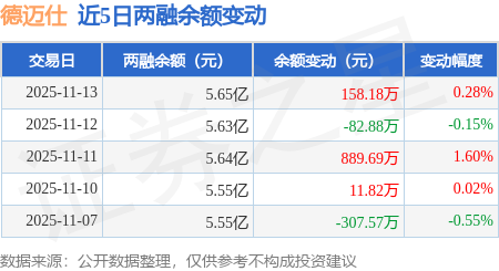 证券之星消息,11月13日,德迈仕(301007)融资买入2658.34万元,融资偿还2500.16万元,融资净买入158.18万元,融资余额5.65亿元。