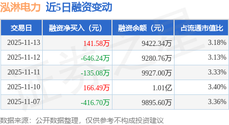 证券之星消息,11月13日,泓淋电力(301439)融资买入787.5万元,融资偿还645.92万元,融资净买入141.58万元,融资余额9422.34万元。