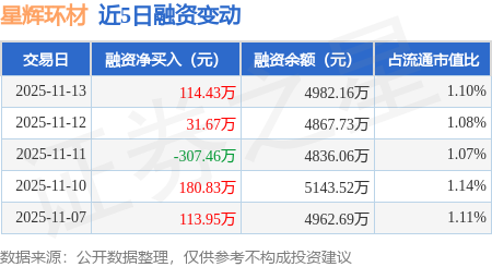证券之星消息,11月13日,星辉环材(300834)融资买入497.31万元,融资偿还382.89万元,融资净买入114.43万元,融资余额4982.16万元,近20个交易日中有11个交易日出现融资净买入。