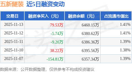 证券之星消息,11月13日,五新隧装(920174)融资买入391.78万元,融资偿还312.25万元,融资净买入79.53万元,融资余额6460.15万元。