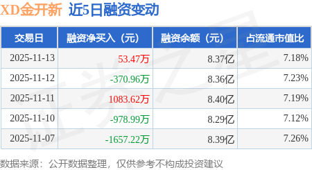 证券之星消息,11月13日,XD金开新(600821)融资买入2451.98万元,融资偿还2398.51万元,融资净买入53.47万元,融资余额8.37亿元。