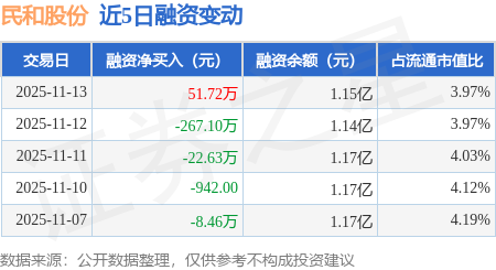 证券之星消息,11月13日,民和股份(002234)融资买入806.08万元,融资偿还754.35万元,融资净买入51.72万元,融资余额1.15亿元。