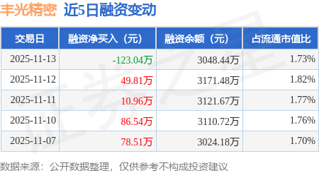 证券之星消息,11月13日,丰光精密(920510)融资买入132.74万元,融资偿还255.79万元,融资净卖出123.04万元,融资余额3048.44万元。