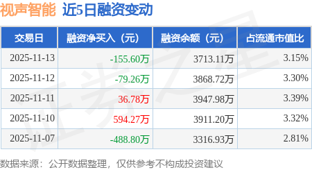 证券之星消息,11月13日,视声智能(920976)融资买入28.3万元,融资偿还183.91万元,融资净卖出155.6万元,融资余额3713.11万元,近20个交易日中有12个交易日出现融资净买入。