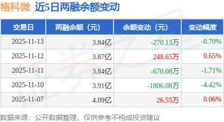 证券之星消息,11月13日,格科微(688728)融资买入1606.98万元,融资偿还1875.85万元,融资净卖出268.87万元,融资余额3.78亿元,近20个交易日中有11个交易日出现融资净买入。