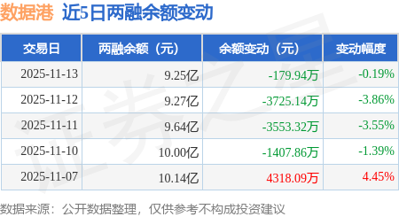 证券之星消息,11月13日,数据港(603881)融资买入1.81亿元,融资偿还1.85亿元,融资净卖出437.44万元,融资余额9.2亿元。