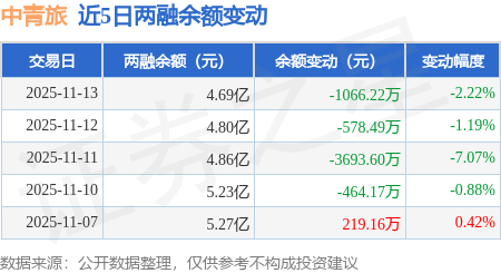 证券之星消息,11月13日,中青旅(600138)融资买入1208.17万元,融资偿还2278.33万元,融资净卖出1070.15万元,融资余额4.68亿元。