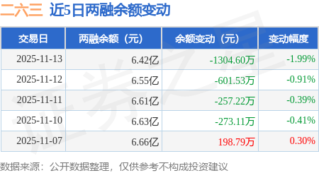 证券之星消息,11月13日,二六三(002467)融资买入2194.27万元,融资偿还3482.5万元,融资净卖出1288.23万元,融资余额6.4亿元。