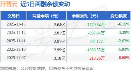 证券之星消息,11月13日,开普云(688228)融资买入4176.57万元,融资偿还5906.41万元,融资净卖出1729.84万元,融资余额2.64亿元。