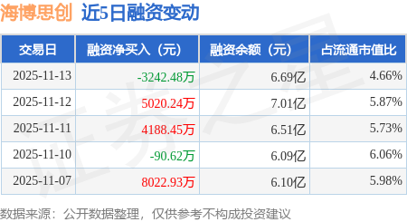 证券之星消息,11月13日,海博思创(688411)融资买入3.86亿元,融资偿还4.19亿元,融资净卖出3242.48万元,融资余额6.69亿元。