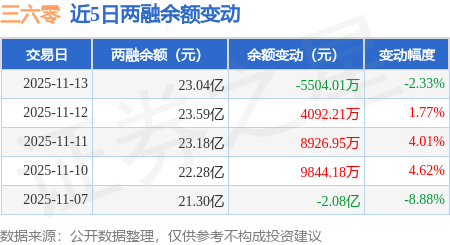 证券之星消息,11月13日,三六零(601360)融资买入3.8亿元,融资偿还4.35亿元,融资净卖出5501.45万元,融资余额22.98亿元。