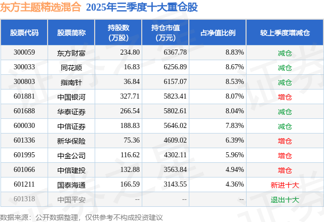 东方主题精选混合的前十大重仓股如下: