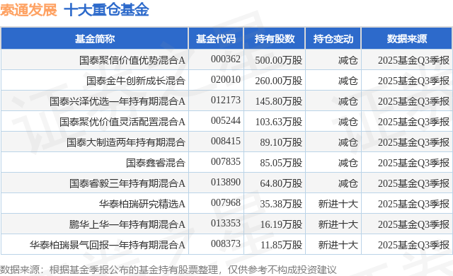 根据2025基金Q3季报公募基金重仓股数据,重仓该股的公募基金共12家,其中持有数量最多的公募基金为国泰基金的国泰聚信价值优势混合A。国泰聚信价值优势混合A目前规模为15.43亿元,最新净值2.583(11月13日),较上一交易日上涨1.37%,近一年上涨25.33%。该公募基金现任基金经理为程洲。程洲在任的基金产品包括:国泰金牛创新成长混合,管理时间为2015年1月26日至今,期间收益率为158.78%;国泰大农业股票A,管理时间为2017年6月15日至今,期间收益率为86.55%;国泰聚优价值灵活配置混合A,管理时间为2017年11月15日至今,期间收益率为90.3%。