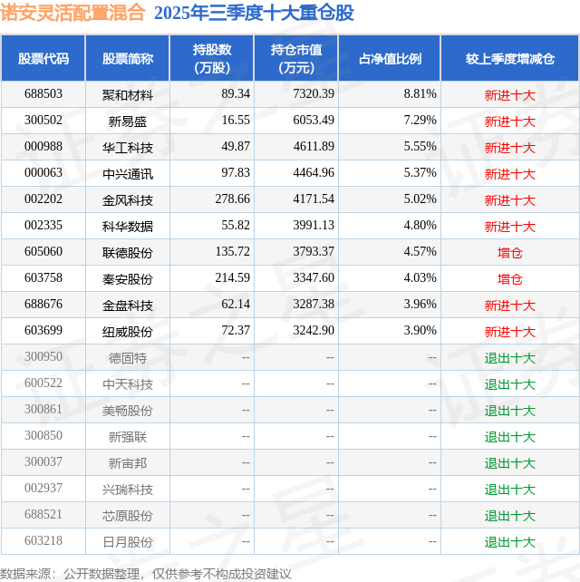 根据2025基金Q3季报公募基金重仓股数据,重仓该股的公募基金共4家,其中持有数量最多的公募基金为诺安基金的诺安灵活配置混合。诺安灵活配置混合目前规模为8.31亿元,最新净值3.551(11月13日),较上一交易日上涨2.04%,近一年上涨28.24%。该公募基金现任基金经理为刘晓飞。刘晓飞在任的基金产品包括:诺安恒鑫混合,管理时间为2022年11月12日至今,期间收益率为31.8%;
