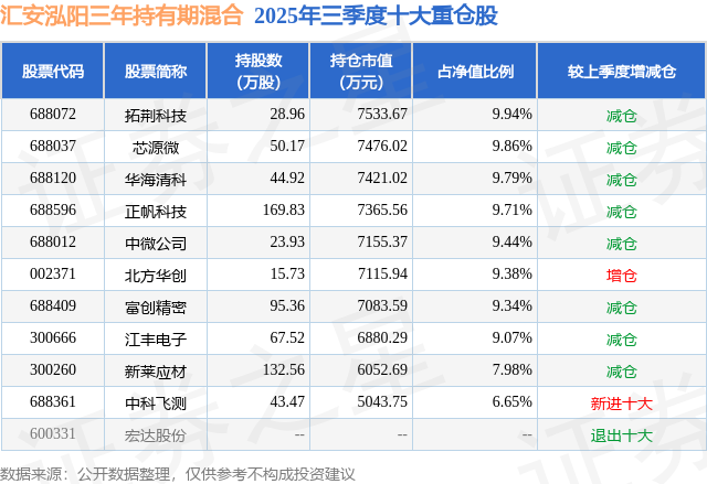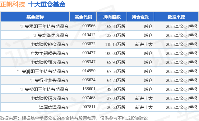根据2025基金Q3季报公募基金重仓股数据,重仓该股的公募基金共19家,其中持有数量最多的公募基金为汇安基金的汇安泓阳三年持有期混合。汇安泓阳三年持有期混合目前规模为7.58亿元,最新净值1.3859(11月13日),较上一交易日下跌1.04%,近一年上涨23.96%。该公募基金现任基金经理为邹唯。邹唯在任的基金产品包括:汇安裕阳三年持有期混合,管理时间为2018年9月27日至今,期间收益率为140.99%;汇安行业龙头混合A,管理时间为2019年8月28日至今,期间收益率为158.39%;汇安均衡优选混合,管理时间为2021年2月9日至今,期间收益率为17.41%。