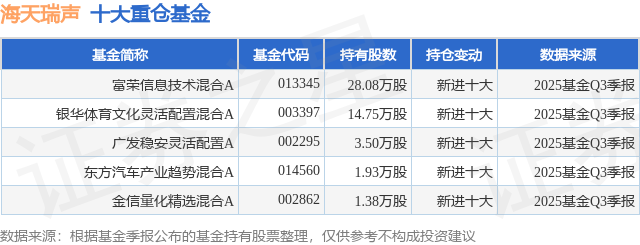 重仓海天瑞声的公募基金请见下表: