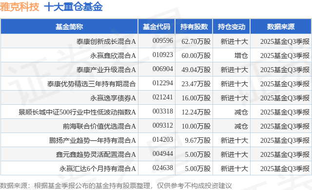 根据2025基金Q3季报公募基金重仓股数据,重仓该股的公募基金共26家,其中持有数量最多的公募基金为泰康基金的泰康创新成长混合A。泰康创新成长混合A目前规模为8.12亿元,最新净值1.2891(11月13日),较上一交易日上涨0.74%,近一年上涨38.79%。该公募基金现任基金经理为薛小波。薛小波在任的基金产品包括:泰康产业升级混合A,管理时间为2019年5月17日至今,期间收益率为164.49%;泰康优势精选三年持有期混合,管理时间为2021年8月31日至今,期间收益率为13.89%。