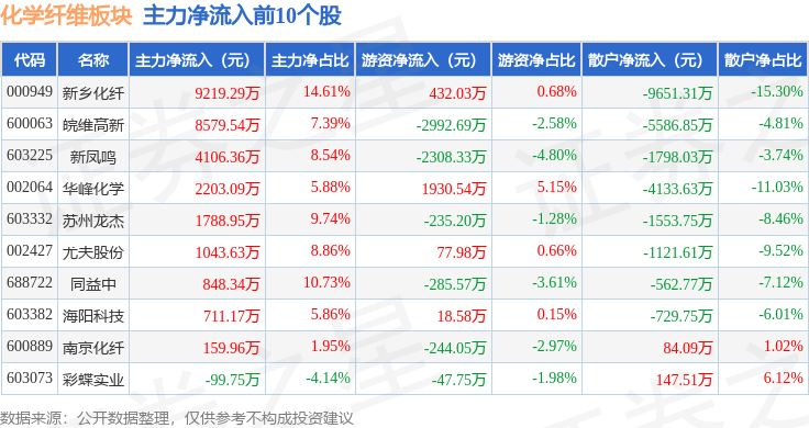 从资金流向上来看,当日化学纤维板块主力资金净流出1188.01万元,游资资金净流入4561.32万元,散户资金净流出3373.32万元。化学纤维板块个股资金流向见下表: