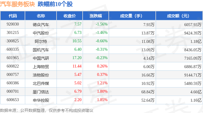 证券之星消息,11月14日汽车服务板块较上一交易日上涨0.17%,交运股份领涨。当日上证指数报收于3990.49,下跌0.97%。深证成指报收于13216.03,下跌1.93%。汽车服务板块个股涨跌见下表: