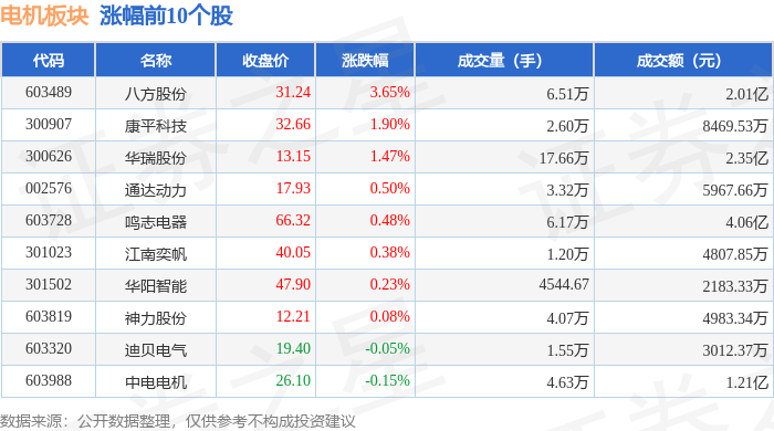 从资金流向上来看,当日电机板块主力资金净流出10.37亿元,游资资金净流入7095.37万元,散户资金净流入9.66亿元。电机板块个股资金流向见下表: